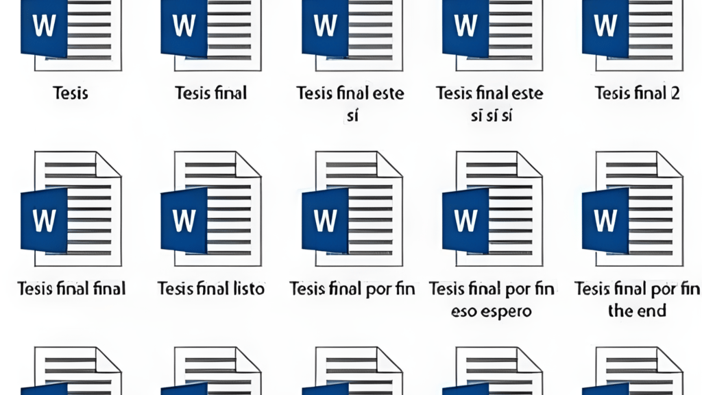 Recuerdo perfectamente la cantidad de versiones y ajustes que entre mi profesor guía y yo generábamos a mi tesis. Y claro, la creación de esta clase de documentos es un proceso exploratorio, de ensayo y error, de ajuste constante de objetivos. Cada una de estas intervenciones generaba modificaciones y si no existía un mínimo de orden con todos estos archivos, ¡podrías terminar rehaciendo temas ya superados!